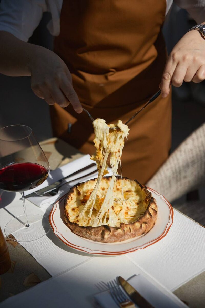 Меню ресторана разработано шеф-поваром Беллой Колбая, предлагая классические грузинские блюда в новых интерпретациях. Гости могут насладиться уникальными сочетаниями, вызывающими ассоциации не только с Грузией, но и с кухнями Турции и Греции.