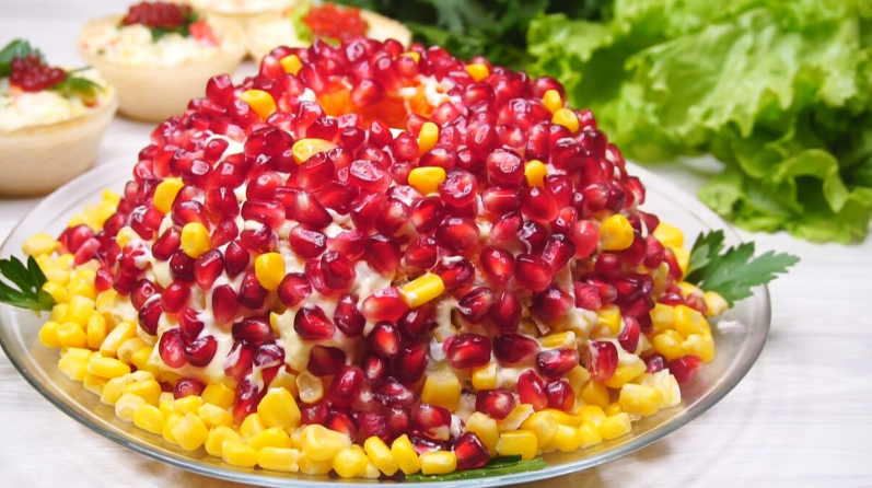 - Третий — кукуруза, майонез.