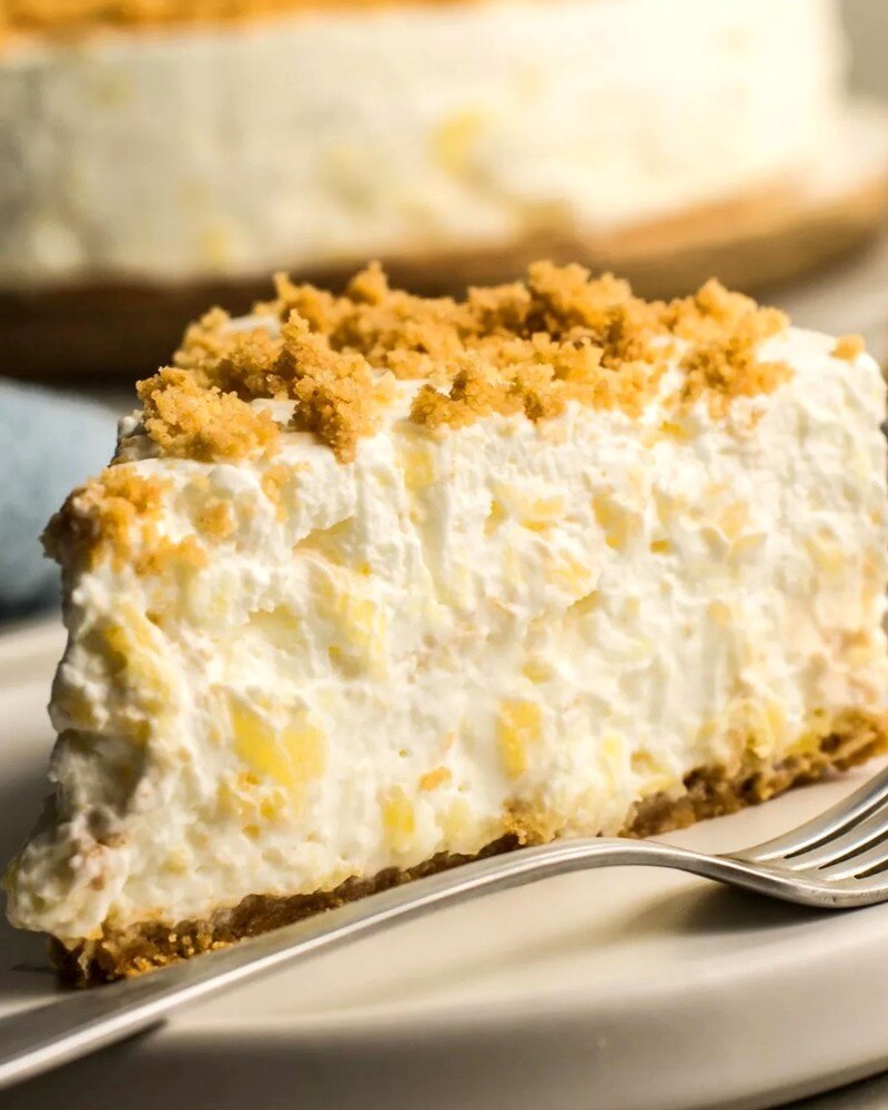 После полного застывания нарежьте чизкейк на порции и подавайте к столу. Этот универсальный рецепт можно адаптировать, добавив вместо ананасов другие ваши любимые фрукты. Главное — не забывайте отжимать лишний сок, чтобы начинка не получилась слишком жидкой.