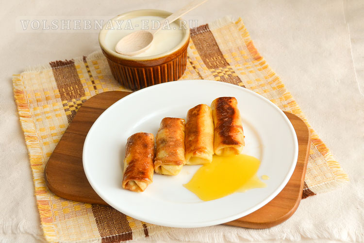 Налистники лучше подавать горячими, дополненными сметаной, медом или вареньем на ваш вкус.