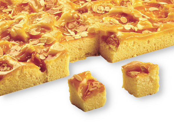 - Пирог "Яблочный элит": Этот ароматный пирог изготовлен на основе песочного теста и наполнен хрустящими яблочными дольками. Он декорирован миндальными слайсами и разделен на 12 порций, готовых к употреблению.
