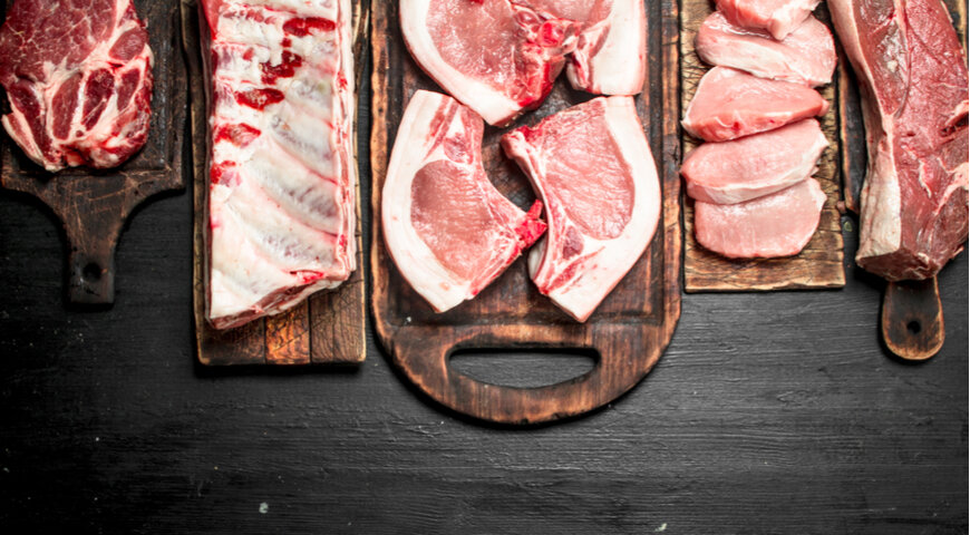 - Свиная корейка на кости: Упругое мясо, нарезанное на порции, из которого можно сделать котлеты, стейки или вкусное жаркое.