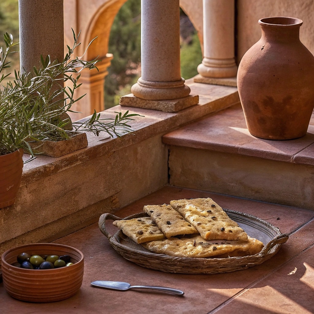 Древнегреческий хлеб с орегано и маслинами