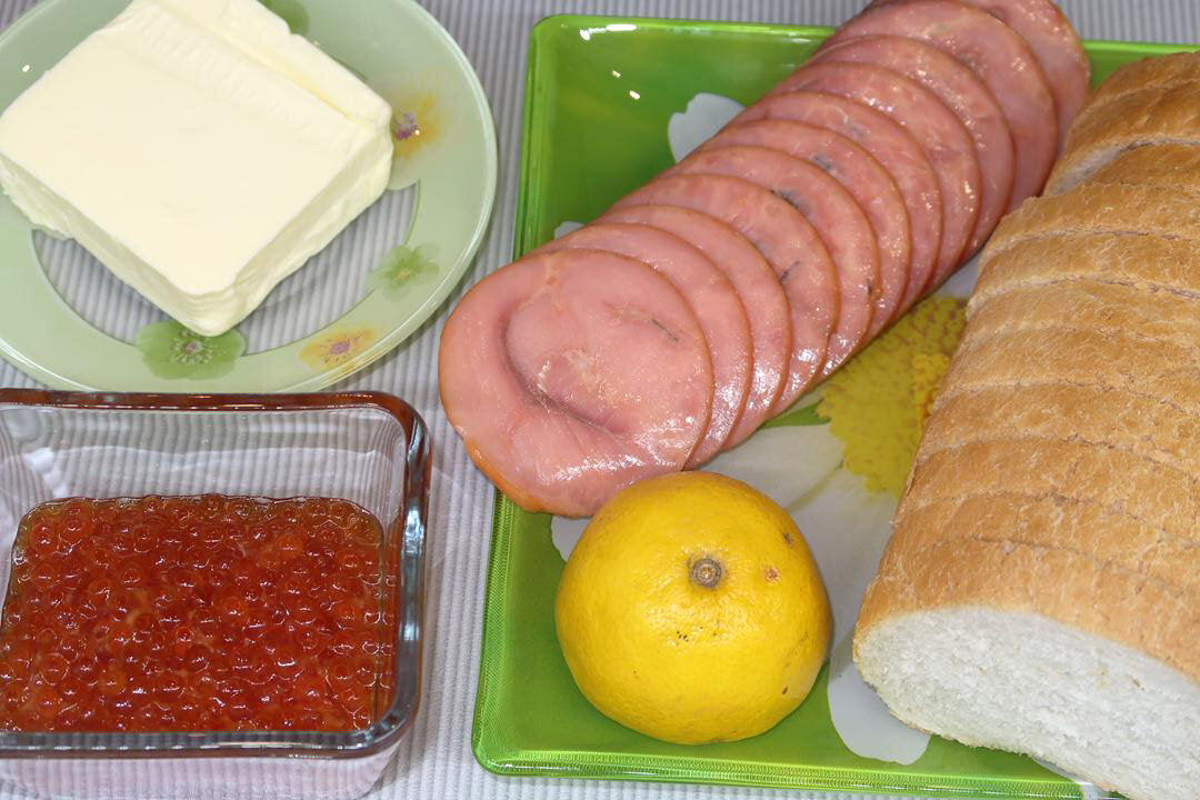 Теперь приступаем к формированию бутербродов! На смазанное маслом хлебцо укладываем ломтик слабосоленой горбуши. Разделите оставшееся пространство: на одну половину положите четвертинку лимона, а на другую – щедрую порцию красной икры.