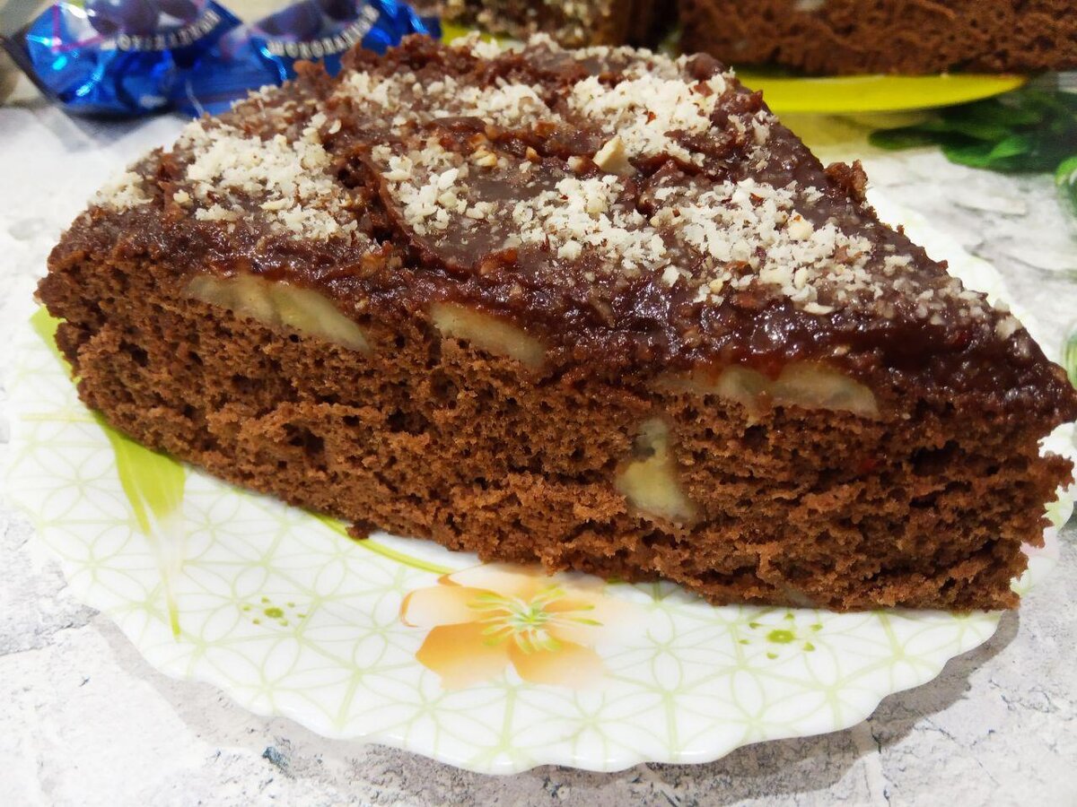 Нежный банановый шоколадный пирог с шоколадной глазурью