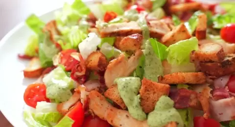 Следует начать с подготовки домашних сухариков из багета, обжарив их с травами и маслом в духовке. Далее бекон обжаривается до хрустящего состояния, а куриное филе подрумянивается на лишнем жиру. Салат собирается из листьев, помидоров, куриного филе и бекона, затем заправляется ароматным соусом, который добавляет особую пикантность. Перед подачей добавляют хрустящие сухарики.