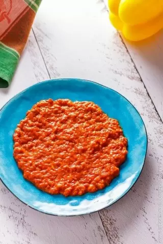 - Приготовление: запекайте перцы до образования черной корки, затем очистите и смешайте все ингредиенты до получения однородной массы.