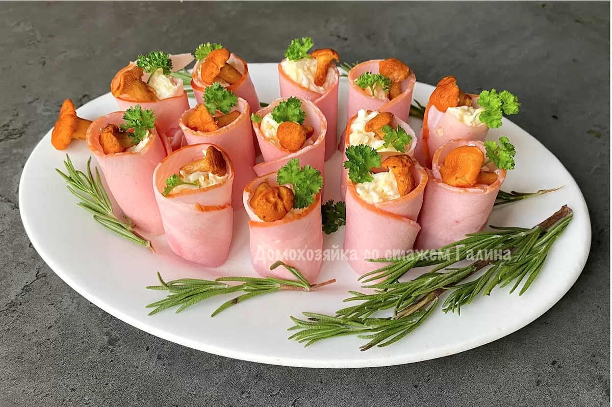Этот яркий акцент на праздничном столе станет настоящим украшением вечеринки. Гости с удовольствием оценят гармоничные сочетания сыра, грибов и орехов, заживленных в нежной ветчине. Приятного аппетита!