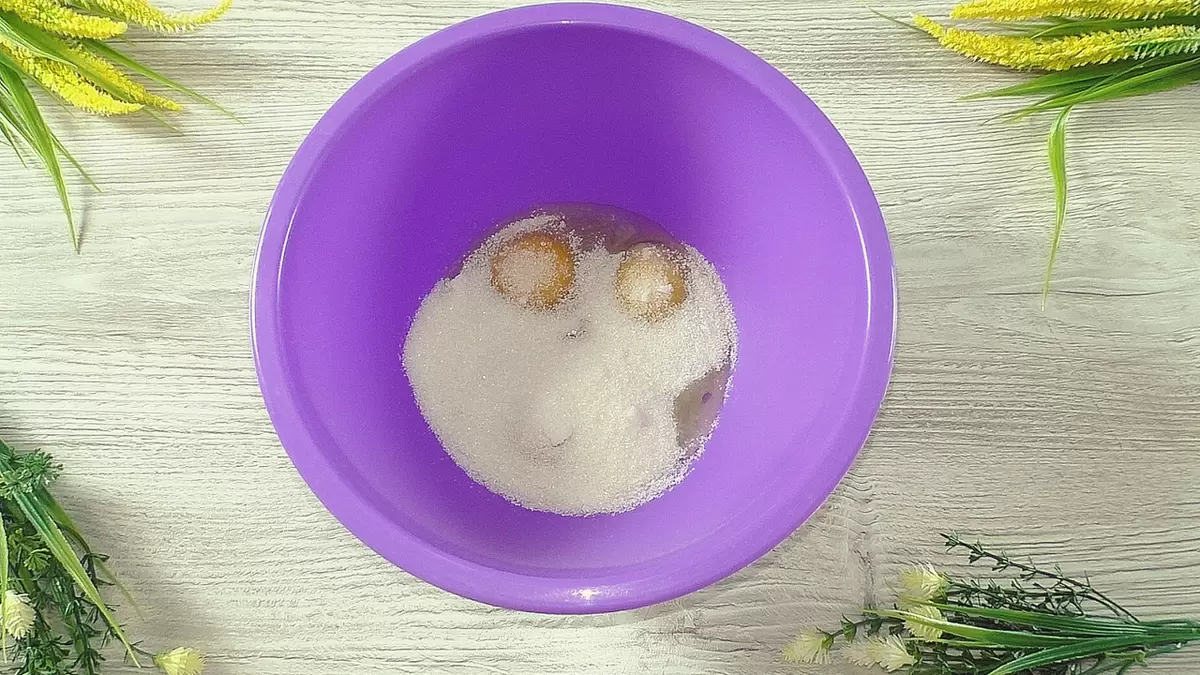 Для приготовления в миске смешать яйца, щепотку соли и сахар. Затем добавить сметану и тщательно перемешать до однородности. После этого следует добавить овсяные хлопья и разрыхлитель, снова перемешивая. Если используются крупные хлопья, их стоит немного измельчить в блендере или кофемолке (не в муку).