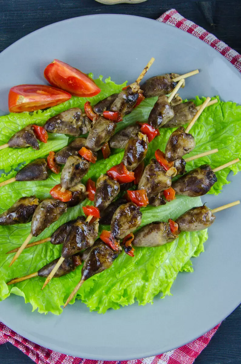 Готовые куриные сердечки подаются на стол с различными овощами, что делает их отличным вариантом для ужина или закуски на пикнике. Удивите своих близких необычным и изысканным блюдом!