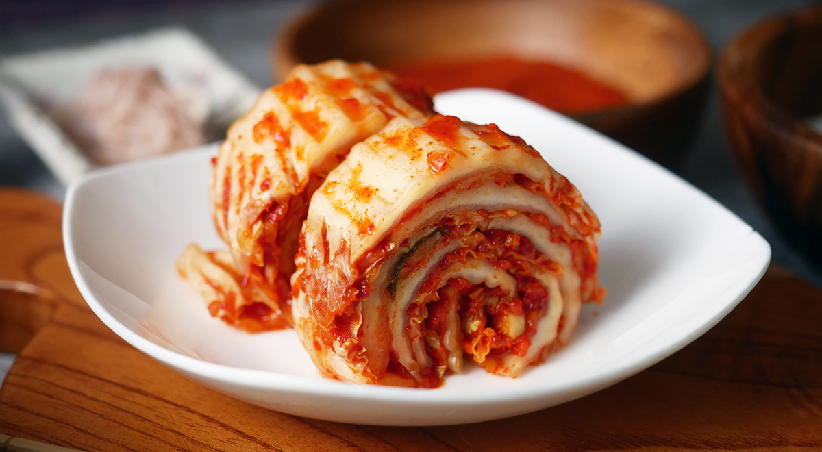 - Кимчи: Острый корейский деликатес из ферментированных овощей, который поддерживает микрофлору кишечника.