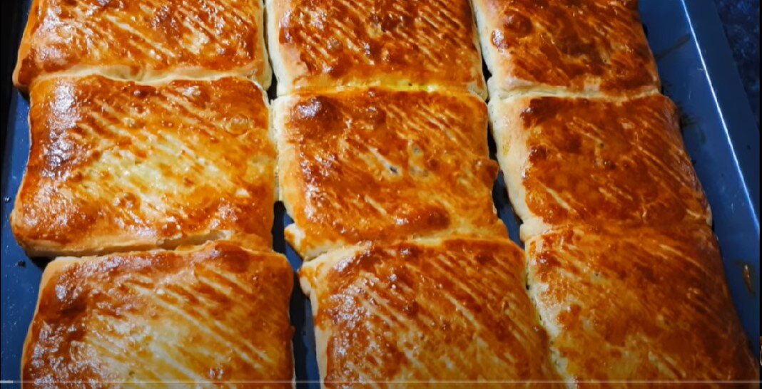 Когда тесто готово, его делят на небольшие части. Раскатываются 5 пластиночек, между которыми смазывается масло, чтобы создать слои. Каждый слой затем нарезается на квадраты, в центр которых помещается начинка. После того как пирожки сформированы, их помещают на противень, оставляют на 10 минут, чтобы они подошли, а затем отправляют в предварительно разогретую духовку на 20 минут при температуре 180 градусов.