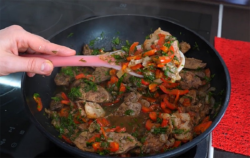 Специи, включая паприку, добавляют на стадии жарки лука — это придаст блюду удивительный аромат. Печень укладывают в сковороду равномерным слоем, а после минимум 5–7 минут томления с овощами, аккуратно перемешивают, позволяя всем слоям сочетаться и напитываться ароматом.