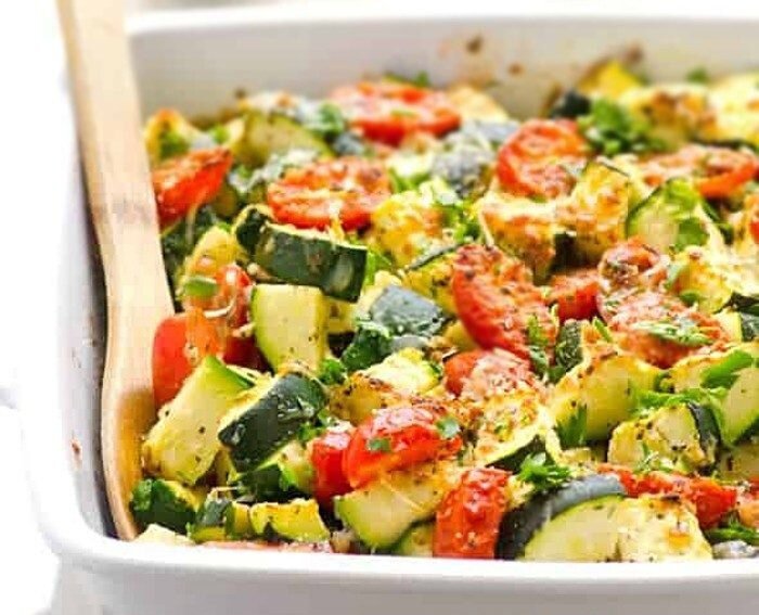 Переложить овощную смесь в подготовленную форму для выпечки и ставить в духовку на 25 минут. За это время кабачки должны стать мягкими внутри, а сверху покрыться хрустящей корочкой.