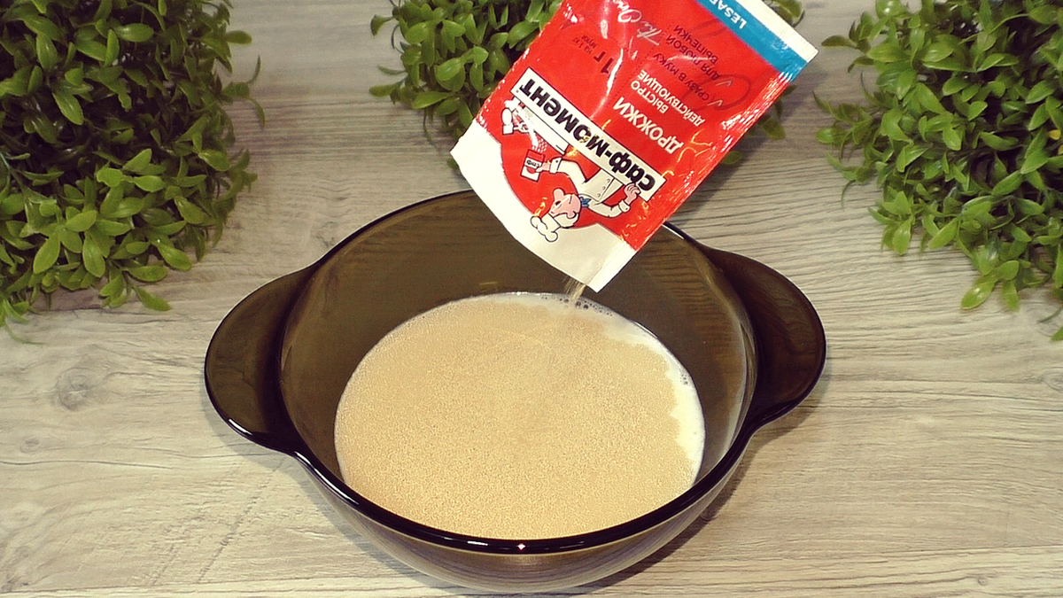 Приготовление теста начинается с того, что в теплое молоко добавляют сахар и дрожжи, оставляя смесь на 3 минуты для активизации. В это время в другой миске взбивают яйца — один желток откладывается для смазки.