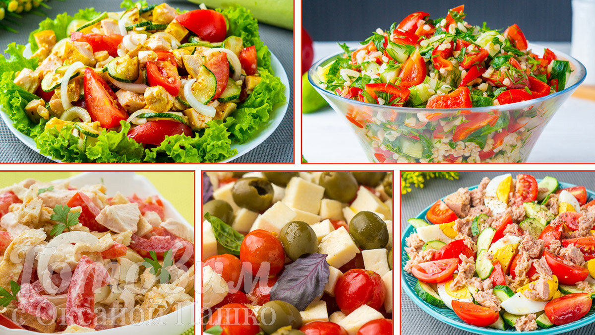Лето — это время, когда меню наполняется яркими овощами и свежими салатами. В данном материале представлены 5 удивительных рецептов летних салатов, которые порадуют своим вкусом и минимализмом. Эти салаты не только витаминные и ароматные, но и большинство из них обходится без майонеза, что положительно скажется на здоровье и фигуре. Среди предложенных блюд можно встретить необычный салат с курицей и кабачками, оригинальный салат с традиционным турецким булгуром, легкий салат с тунцом, а также интересный вариант с давленными помидорами черри. Всего один салат из этой подборки заправляется майонезом — сытный салат с курицей и помидорами, но его можно смело заменить на сметану или нежный йогурт. Скорее всего, среди этих рецептов найдется ваше новое любимое летнее блюдо!