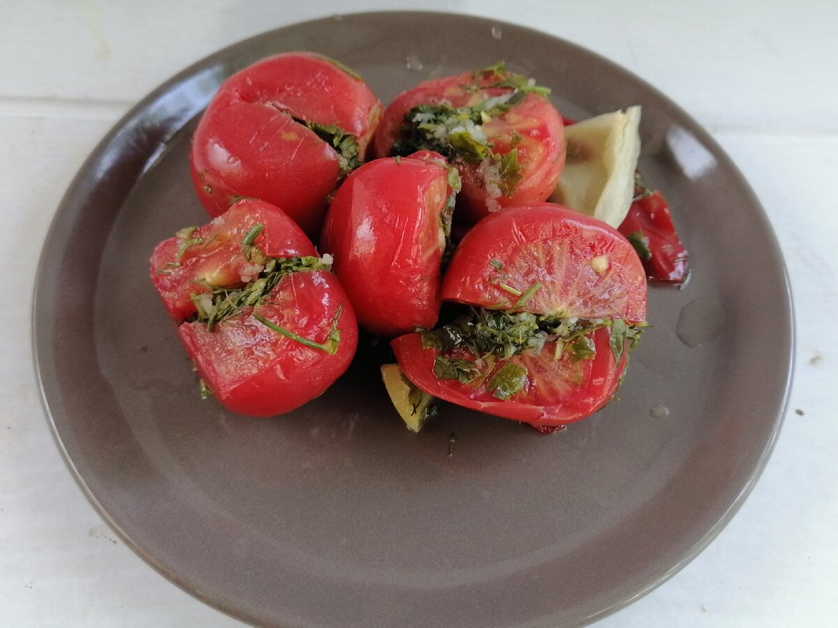 Как только овощи начнут выделять сок и он станет мутным, можно пробовать закуску. Обычно это происходит именно через два дня, но иногда может потребоваться немного больше времени. После этого помидоры следует убрать в холодильник, где они могут храниться до месяца — если доживут до этого срока!