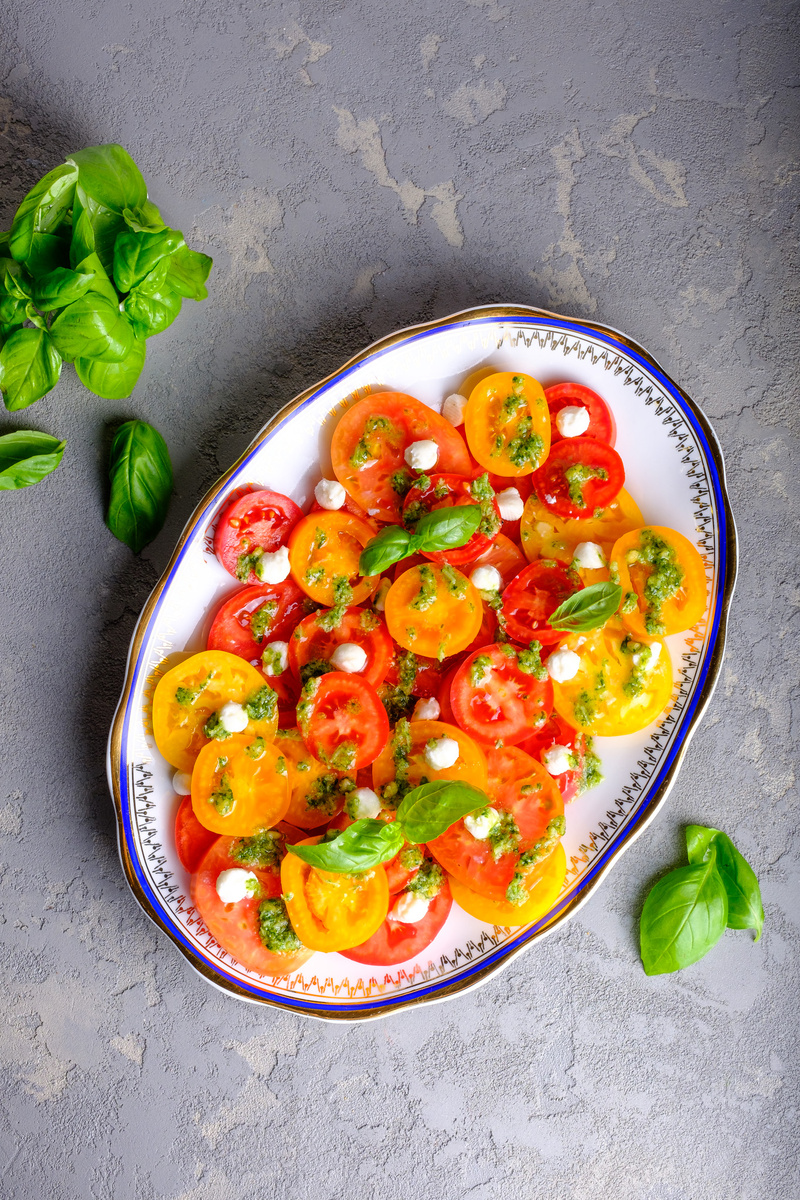 Салат из смешанных помидоров с брынзой и песто — это идеальный способ насладиться летними вкусами, прежде чем наступит осень. Сочетание ярких помидоров и нежного сыра создает истинный кулинарный шедевр, который можно готовить в любое время сезона.