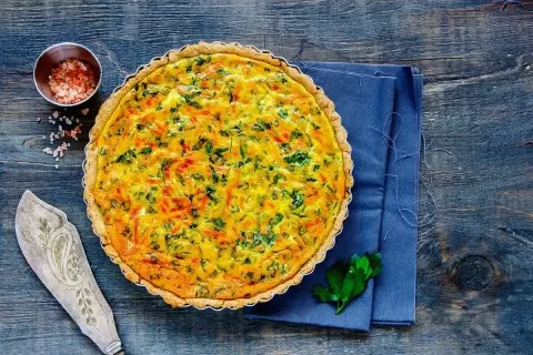 Что касается заливки, то в классическом варианте для неё используются яйца, сливки и спобольше приправ. Однако многие предпочитают заменять яйца на молоко или сметану, делая свой вариант рецепта. Главное, чтобы начинка оставалась густой — соблюдайте правильные пропорции: для одного яйца используйте 120 мл молока или сливок.