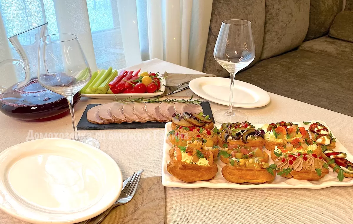 - Капрезе на эклерах: мини-версии классической закуски с моцареллой и томатами, украшенные свежим базиликом и соусом песто, внесут свежесть и аромат в вечер.
