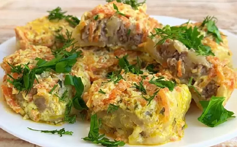 Для начинки тщательно перемешайте фарш с мелко нарезанным луком и специями. Главным акцентом станет ароматный сметанный соус: тушите натертую морковь с добавлением чеснока и зелени, затем добавьте сметану, чтобы придать соусу нежный вкус.