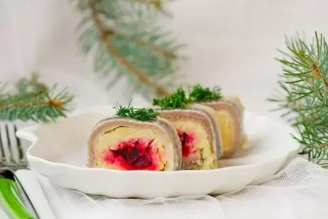 - Заливная шуба: Секрет этой подачи заключается в массе, которая создает легкую невесомую оболочку. Селедка под шубой превращается в настоящий кулинарный шедевр, впечатляющий внешний вид которого подчеркивает его свежий вкус.
