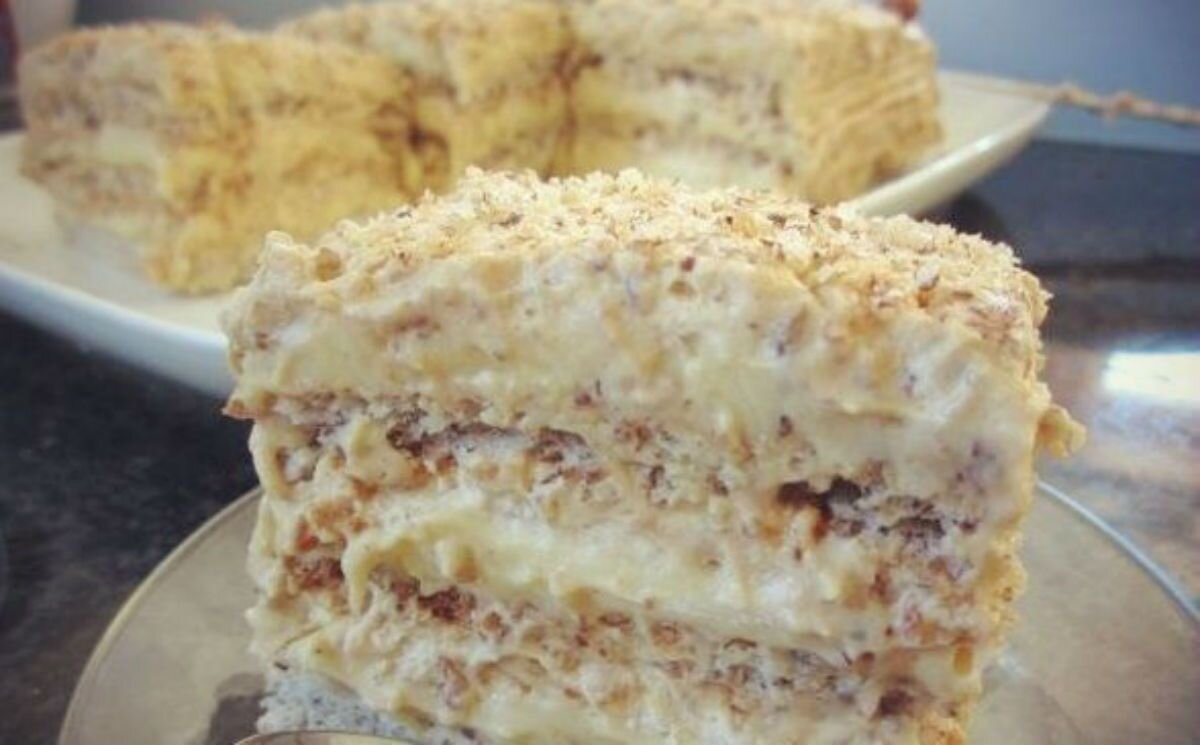 Пока крем остывает, можно заняться тестом для коржей. Взбить белки в крепкую пену, добавить сахар и продолжать взбивать до появления глянцевой структуры. Постепенно ввести муку и орехи, аккуратно перемешать до однородного состояния. Выложить тесто в форму, подготовленную бумагой для выпечки или смазанную маслом, и выпекать в разогретой до 170°C духовке около 20 минут. После выпекания оставить коржи остывать.