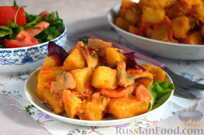 - Картошечка с грибами в соусе — сытное и ароматное блюдо, которое станет настоящим хитом на вашем столе. Смешайте свежие шампиньоны с картофелем, чтобы получить насыщенный вкус!